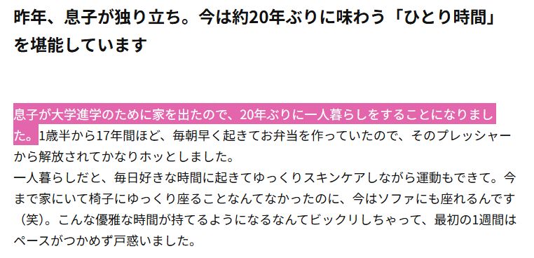 - 2023年に息子が大学進学で家を出て20年ぶりのひとり暮らしをしている