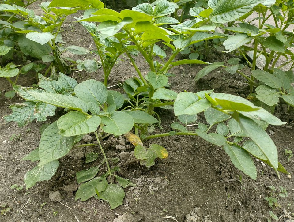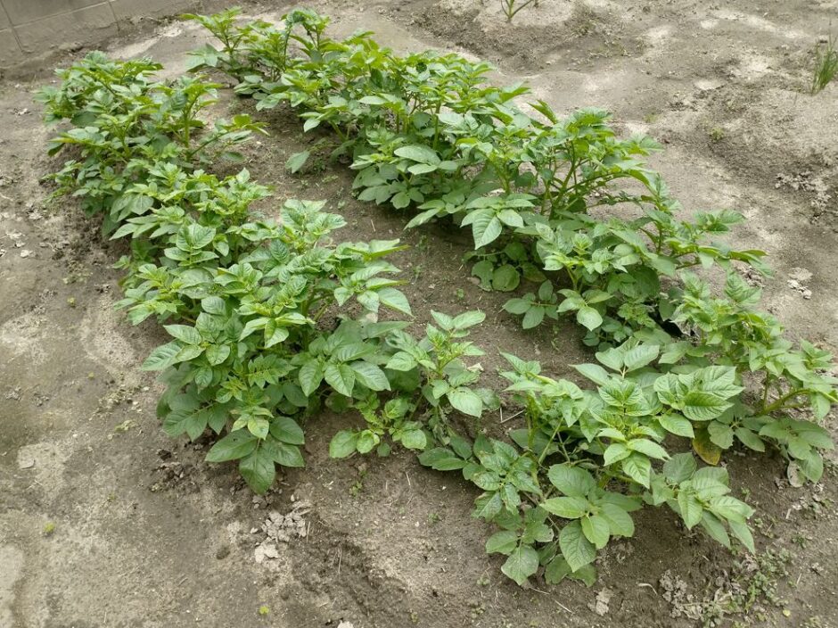 じゃがいもはこれから、土寄せと追肥が大事な時期になる。