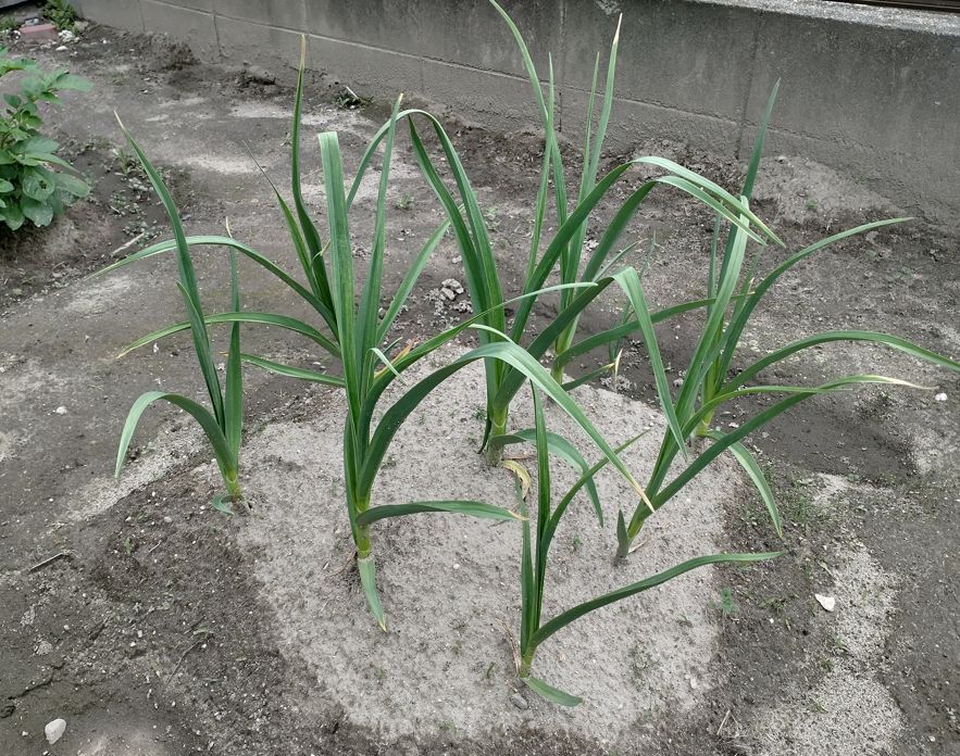 土づくりはいつもどおり米ぬか堆肥を使った。ニンニクは肥沃な土を好むとされていて、有機物が豊富な土が向いているらしい。堆肥を十分に混ぜ込んでから植えたのが、今の株のガッシリ感につながっているかもしれない。